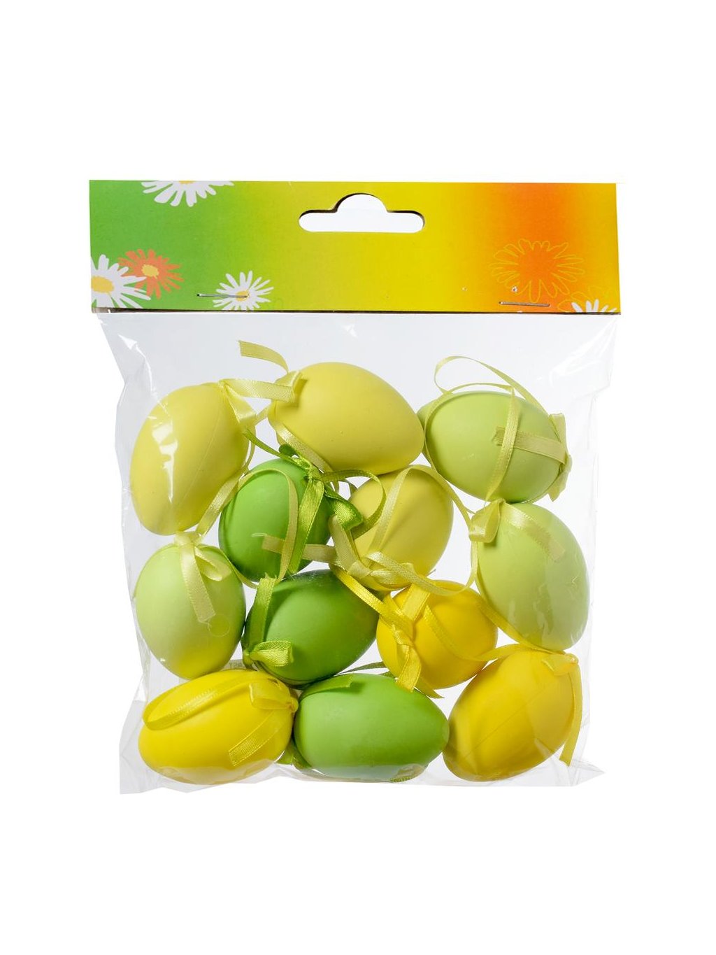 Velikonoční vajíčka, na pověšení, ZELENOŽLUTÝ MIX, 4x6 cm, 12ks/bal.