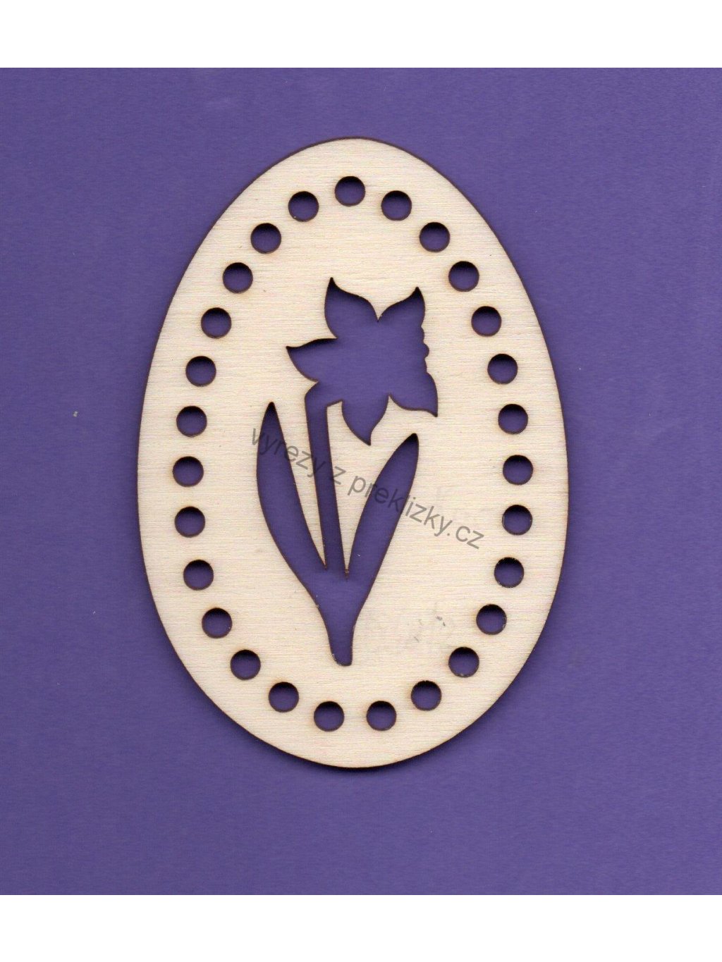 Výřez z překližky, D68/2, VAJÍČKO-NARCISKA, k vyplétání, 6,2x9cm, 1ks