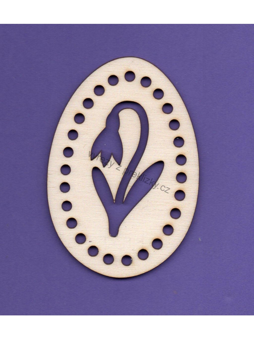 Výřez z překližky, D69/1, VAJÍČKO-SNĚŽENKA, k vyplétání, 6,2x9cm, 1ks