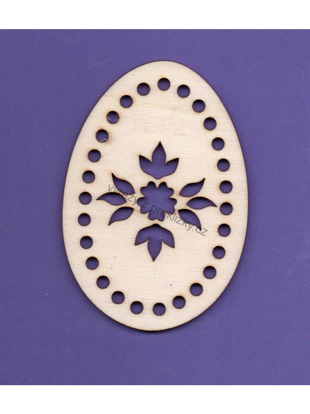 Výřez z překližky, D69/2, VAJÍČKO-KVĚT, k vyplétání, 6,2x9cm, 1ks