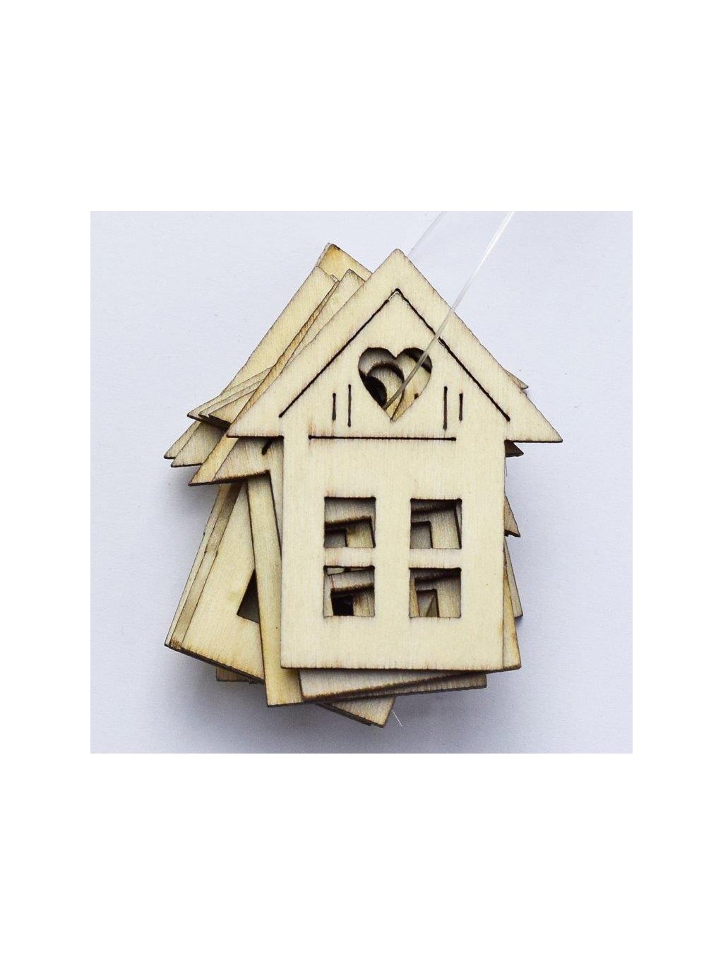 Výřez z překližky, G38, DOMEČEK SE SRDCEM, 2x3cm, 1ks