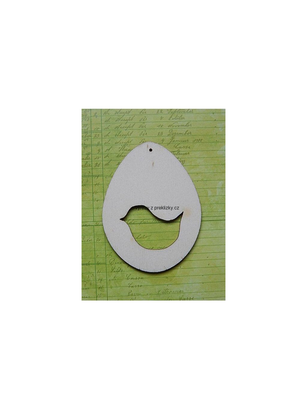 Výřez z překližky, O43, VELIKONOČNÍ VAJÍČKO S PTÁČKEM, 7,6x5,7cm, 1ks