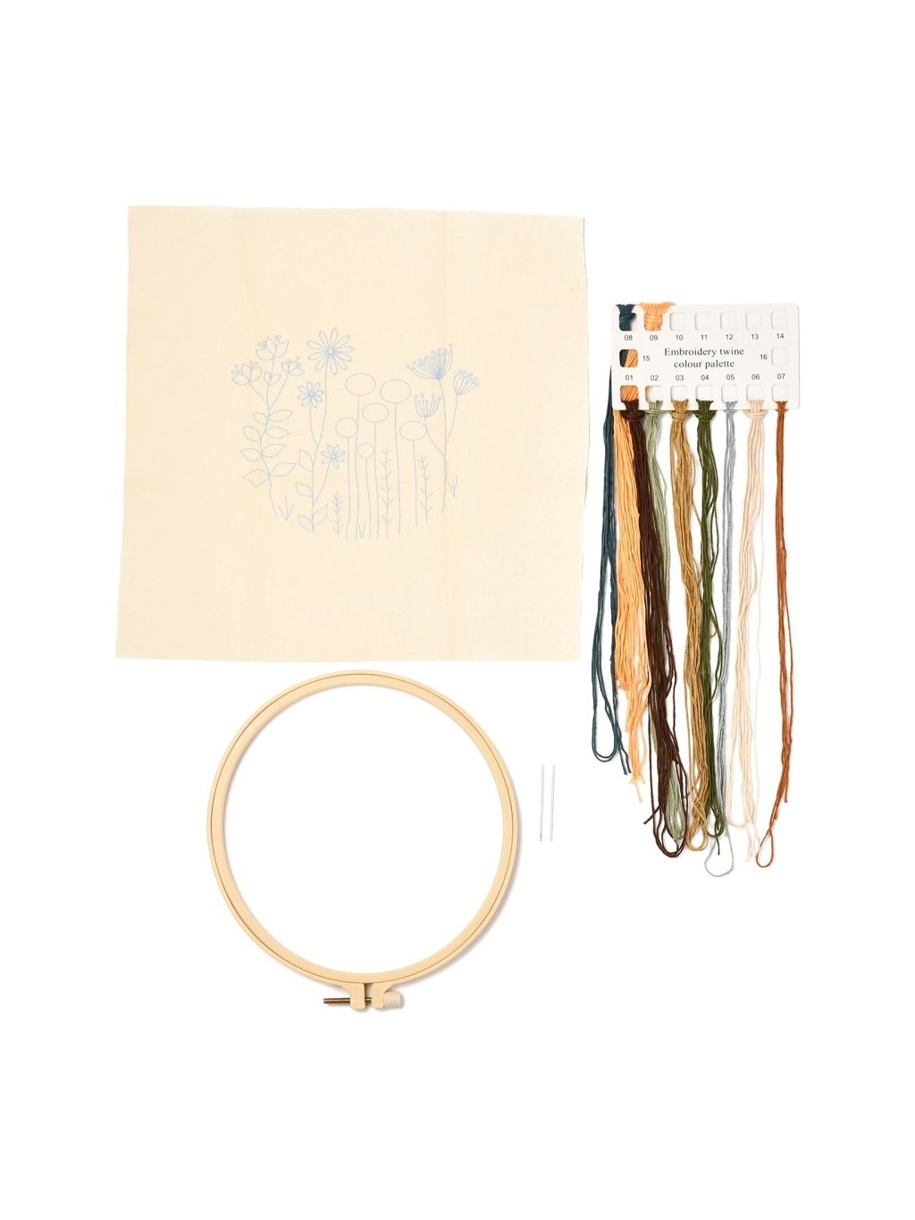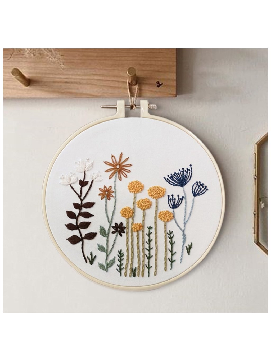 Vyšívací sada obsahuje kruh, do něhož se nasadí látka s předtištěným vzorem. V sadě najdete i sadu bavlnek a jehel. Vzor květiny zjednoduší samotné vyšívání.