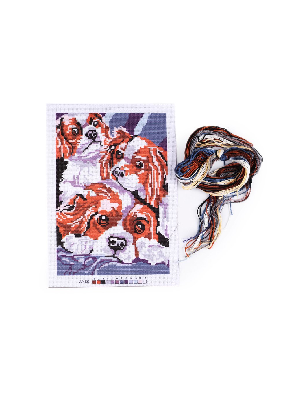 V sadě najdete tkaninu s předlohou, sadu barevných mouline přízí, obrázkový návod na stehy a vyšívací jehlu.