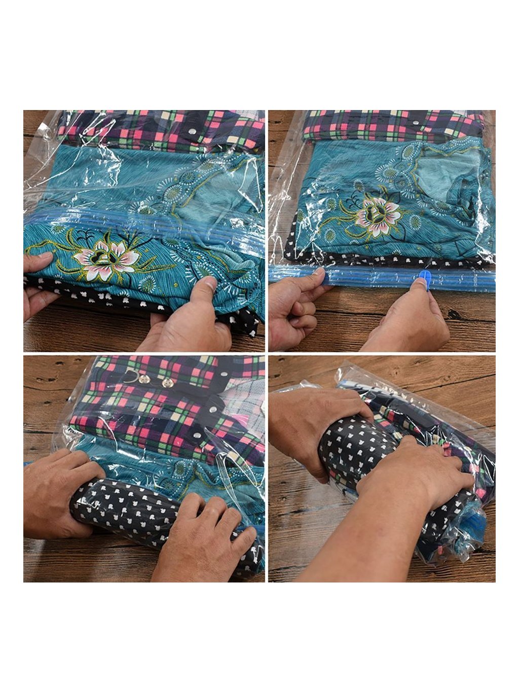 Do pytle vložíte požadované oblečení, uzavřete ho a rolováním vytlačíte veškerý vzduch. Díky rolovacímu vaku zaberete až o 75% prostoru méně. Skoncujte s přeplněnými skříněmi a s nepořádkem po bytě. Uložte nepotřebné věci do rolovacích vakuových pytlů.
