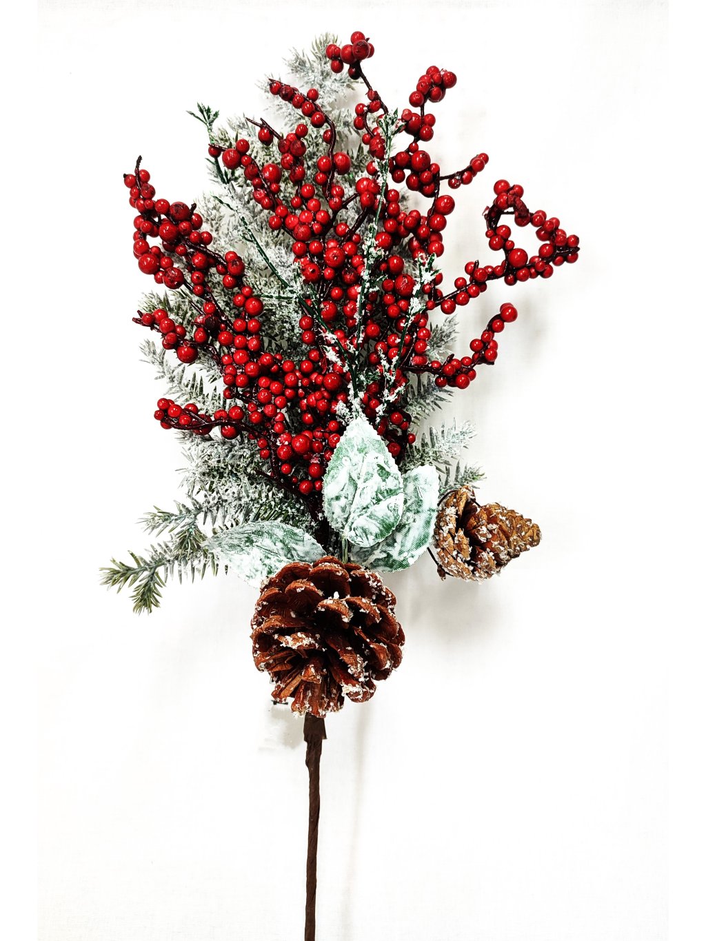 Zápich, ČERVENÉ BOBULE S ŠIŠKOU NA VĚTVI, 47 cm, 1kus