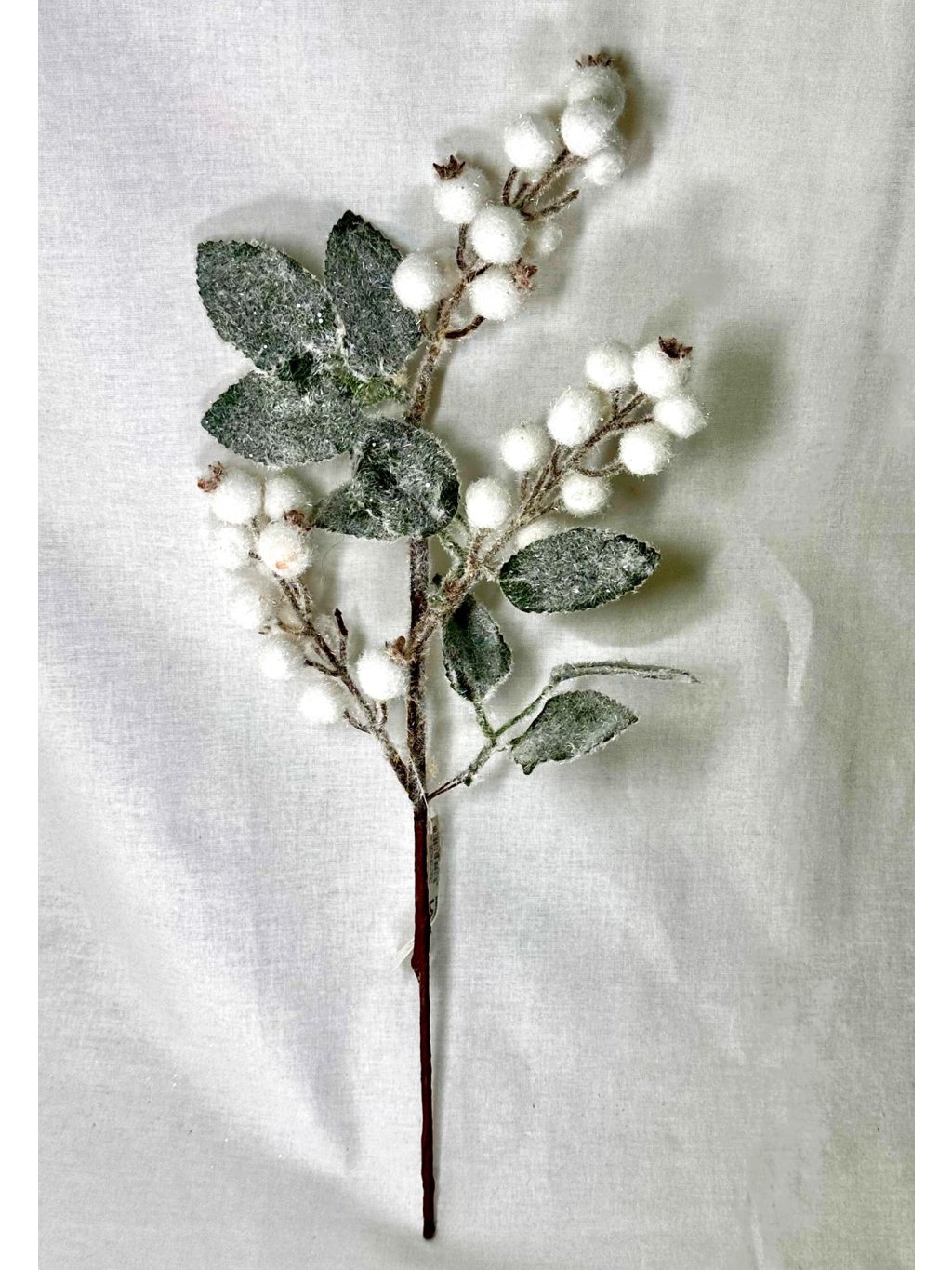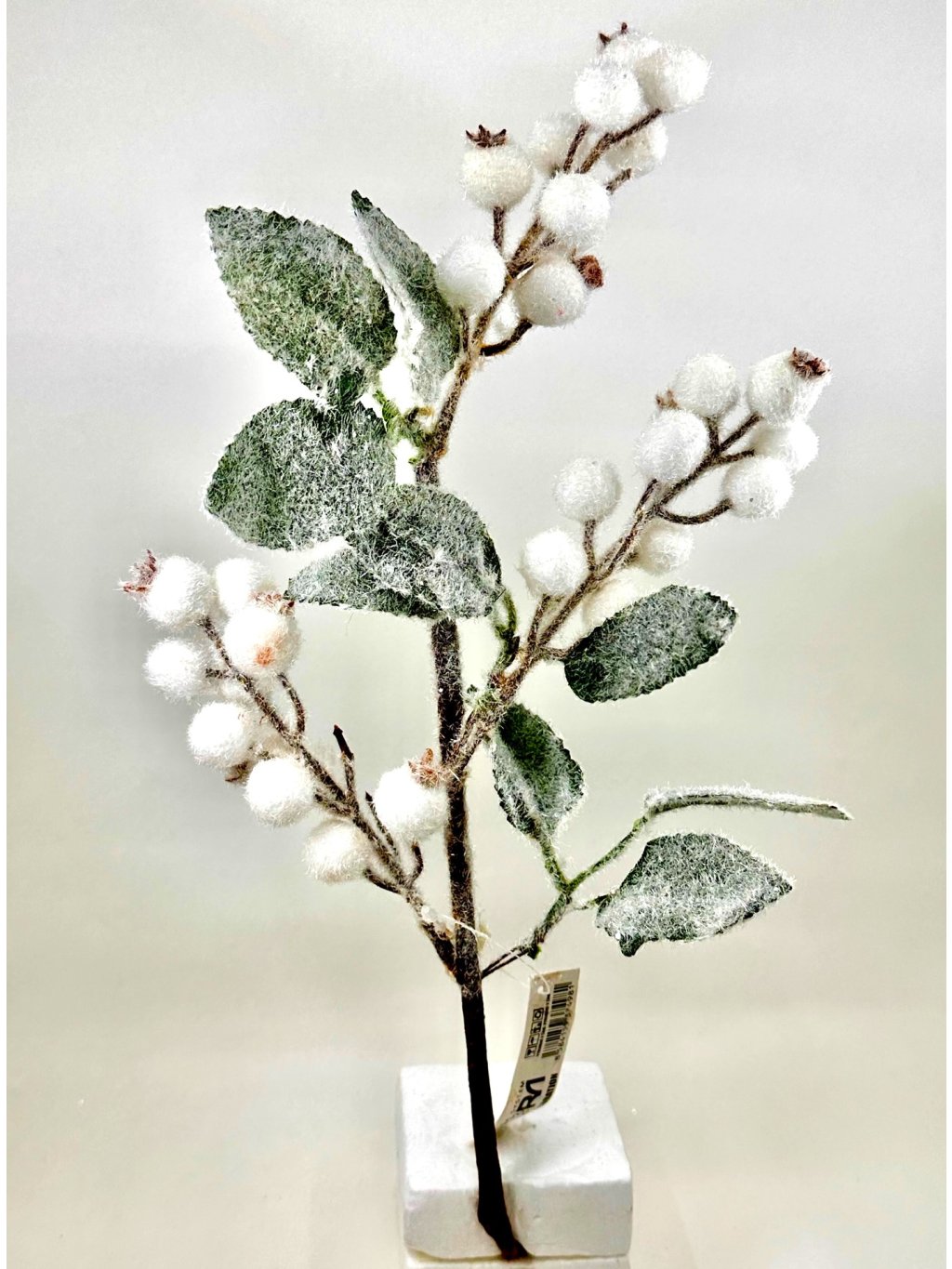 Zápich, větvička, BÍLÉ ZASNĚŽENÉ BOBULE, 43 cm, 1 kus
